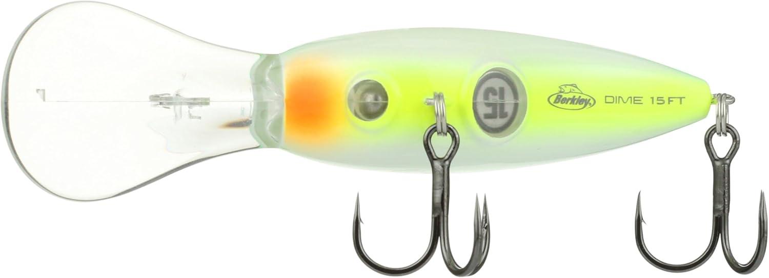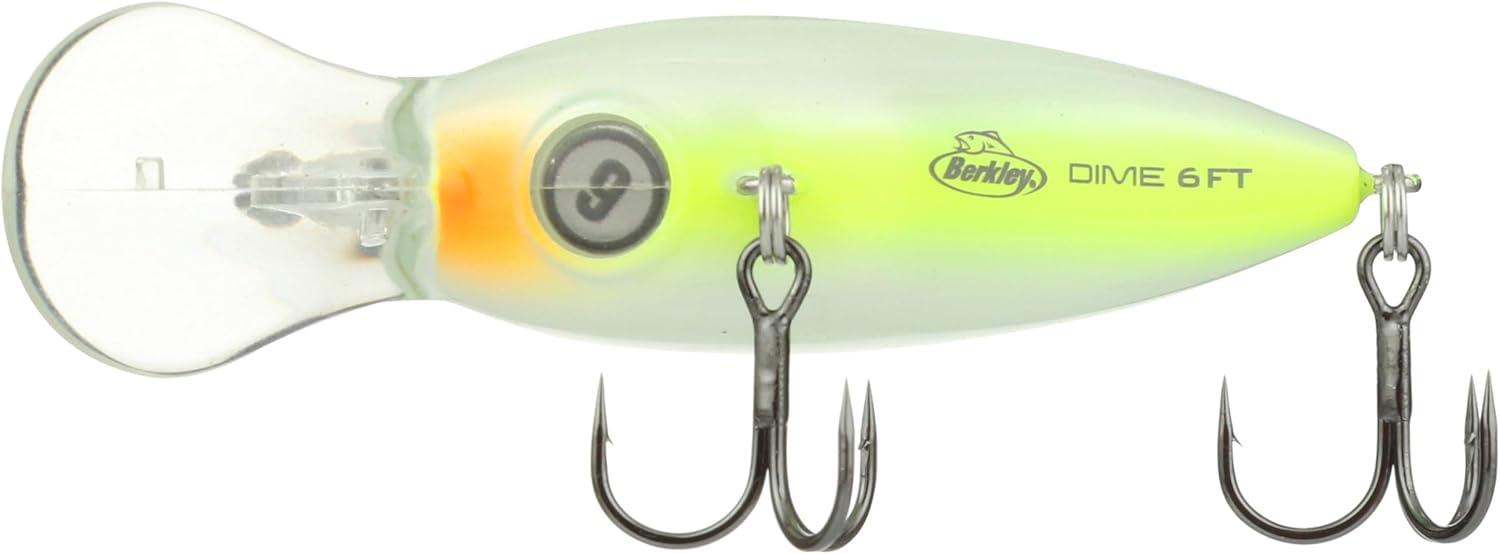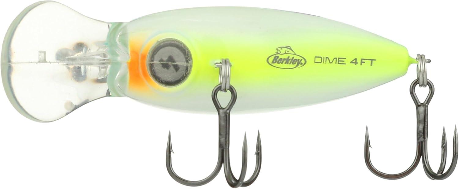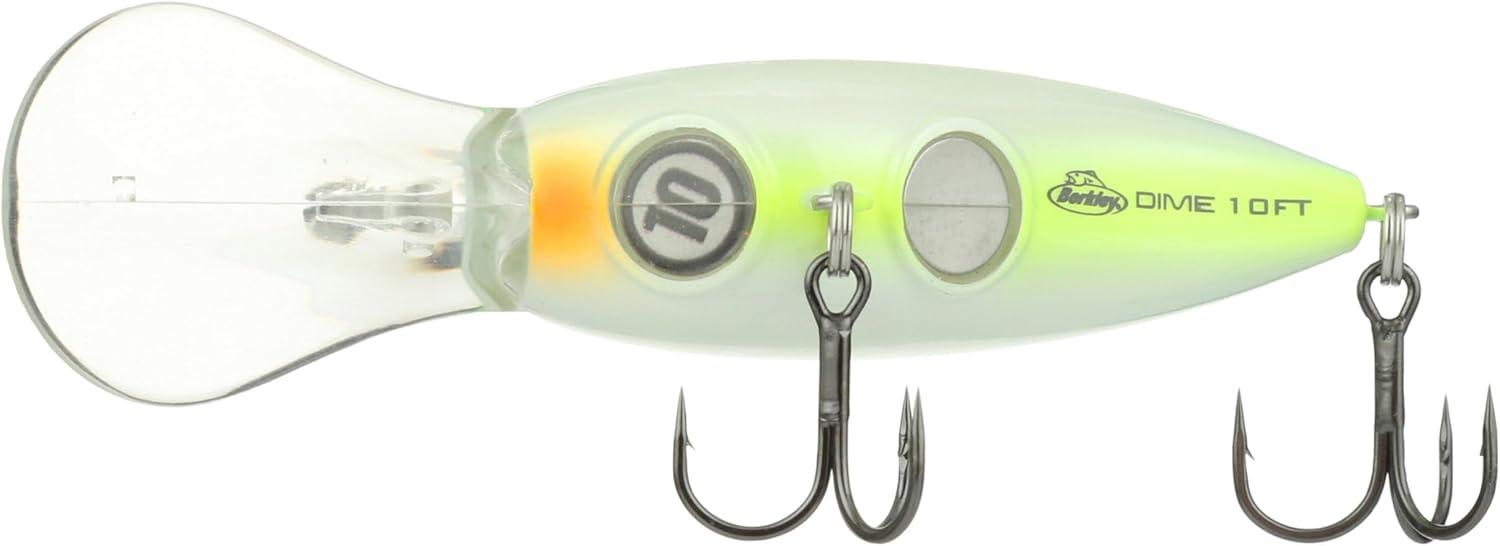 BERKLEY DIME FRESHWATER FISHING BAIT: Designed to mimic a balsa wood bait, Berkley Dime Fishing Lures deliver traditional balsa-like action with extremely durable plastic construction and first-in-class finishes and colorways.