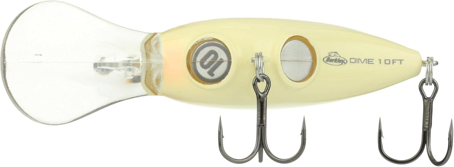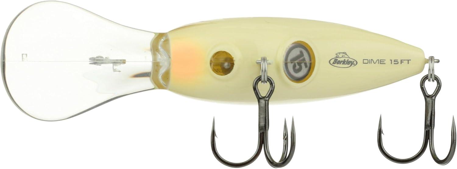 BERKLEY DIME FRESHWATER FISHING BAIT: Designed to mimic a balsa wood bait, Berkley Dime Fishing Lures deliver traditional balsa-like action with extremely durable plastic construction and first-in-class finishes and colorways.